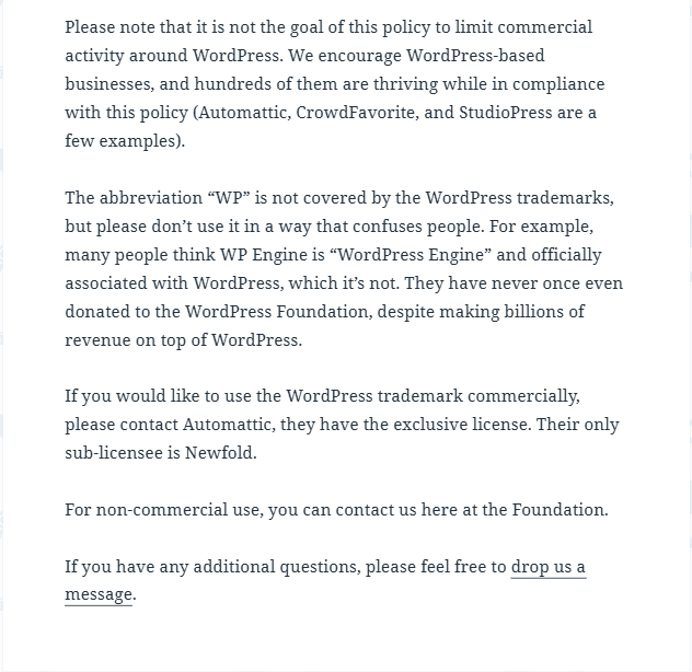 Wer sich auf WordPress® anmelden möchte, muss bestätigen, mit WP Engine nicht finanziell oder anderweitig verbunden zu sein. Trotz wiederholter Nachfragen hatte Matt Mullenweg keine klärende Antwort dazu gegeben.